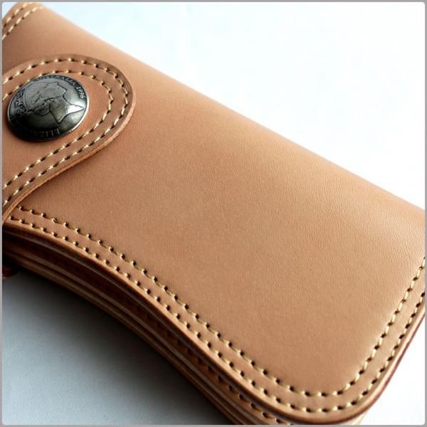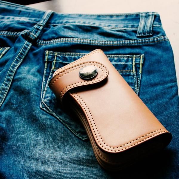 栃木レザーでつくられたハンドメイドの長財布。