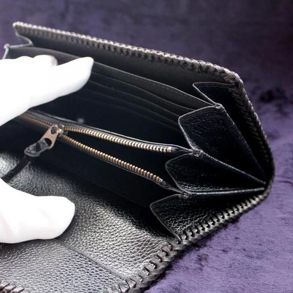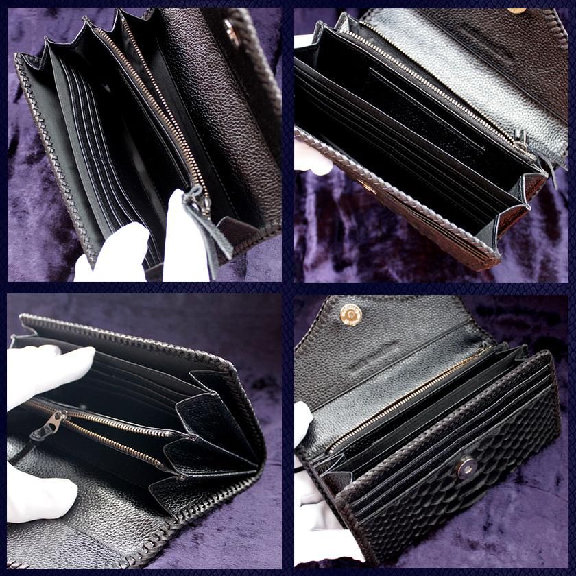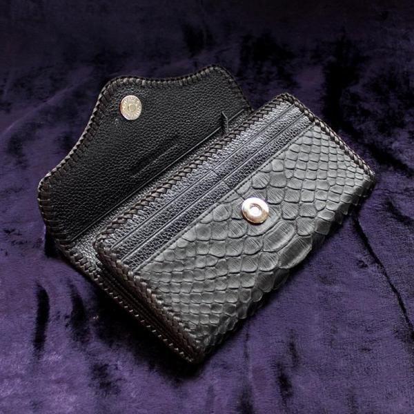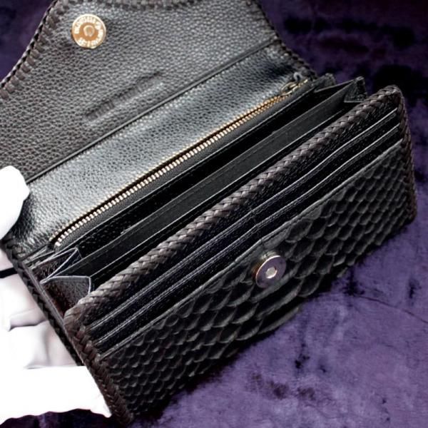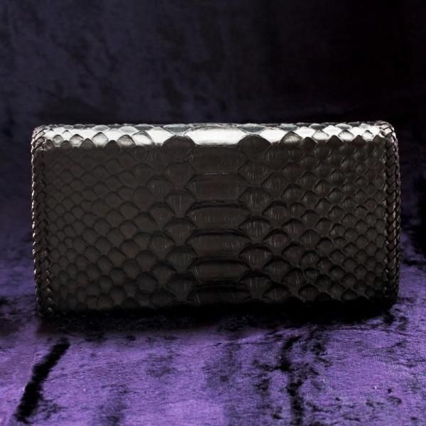 パイソンマットブラック長財布/バックカット腹側/カード収納20枚/BRIEF-CUT