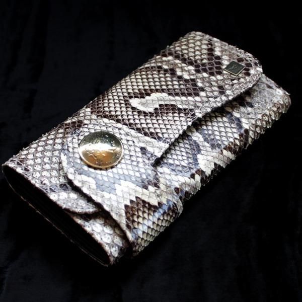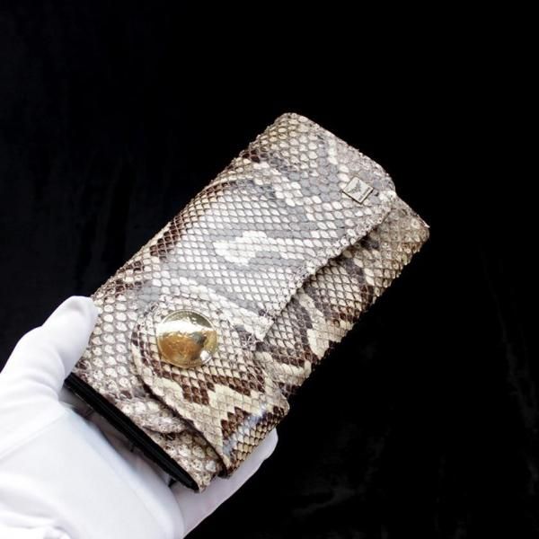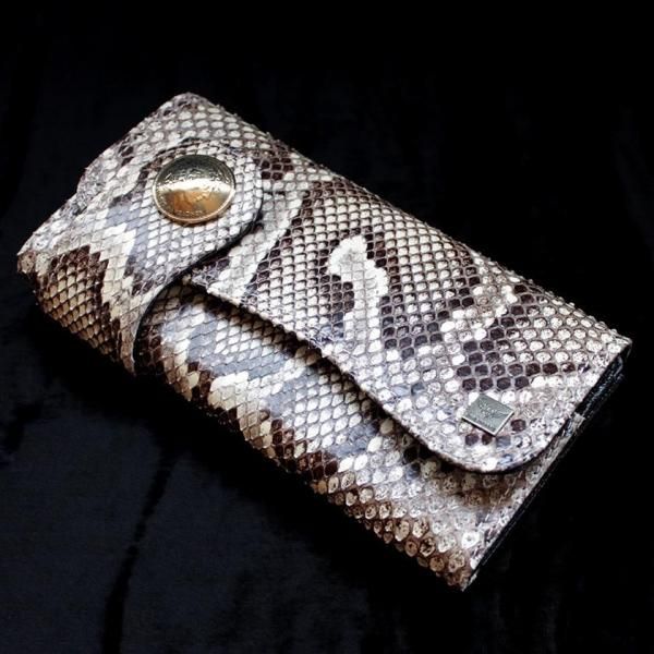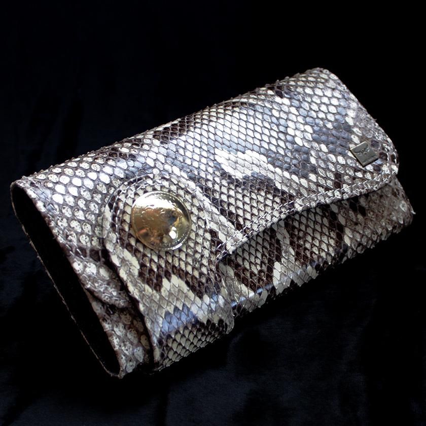 パイソンレザー腹側仕様のパイソンバックカット長財布。