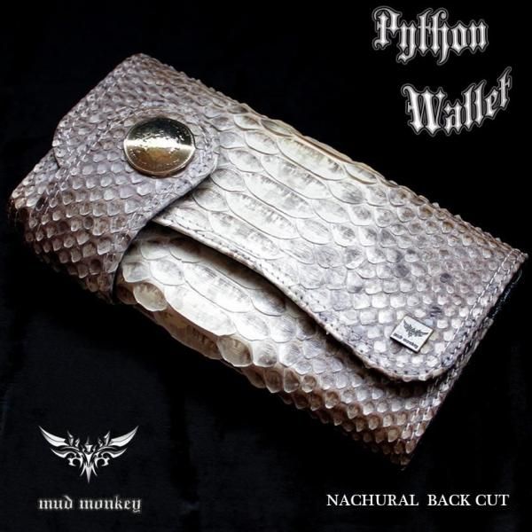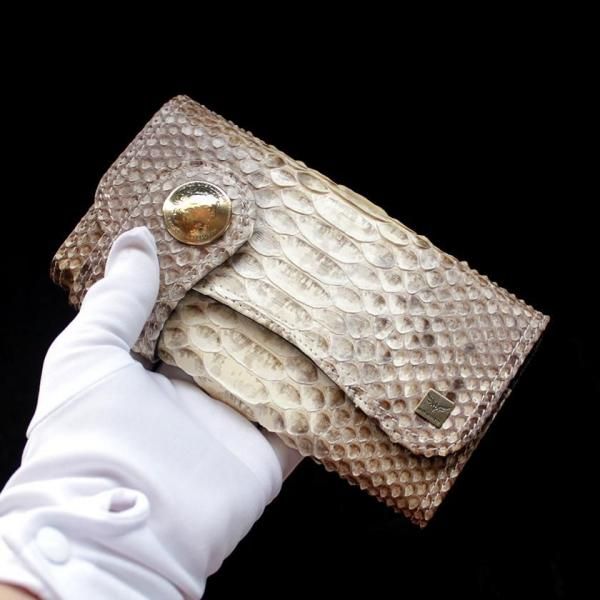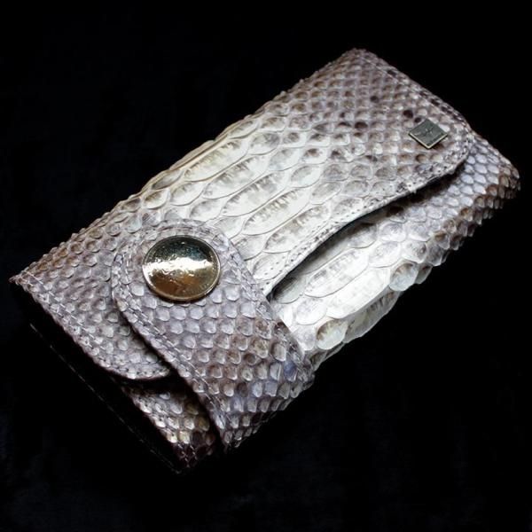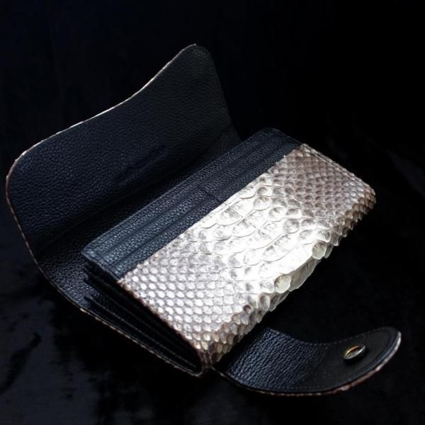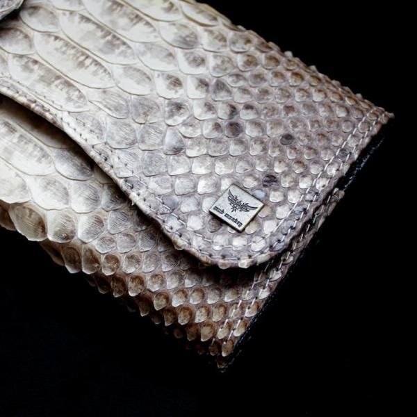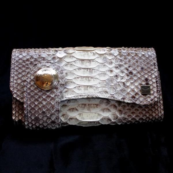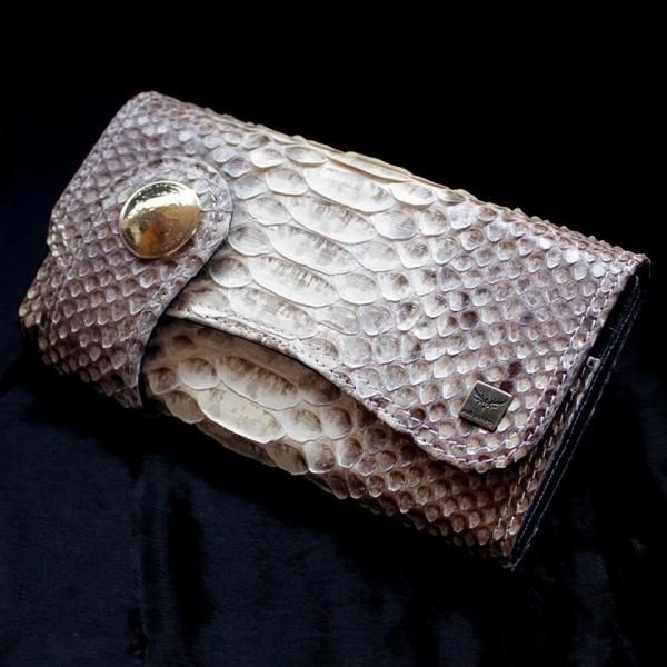 パイソンレザー腹側仕様のパイソンバックカット長財布。
