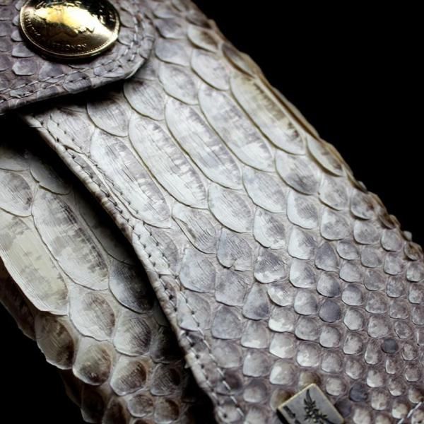 パイソンレザーは他では入手困難な全長3メートル、腹幅30cmの大蛇を使用しているので、