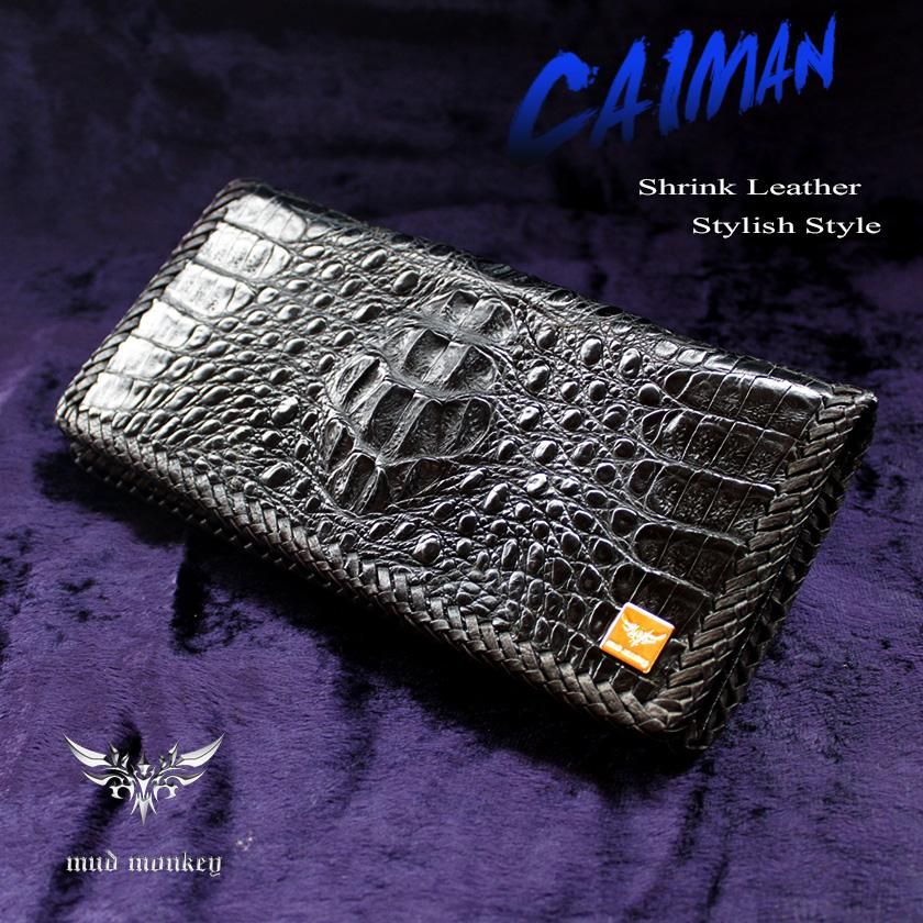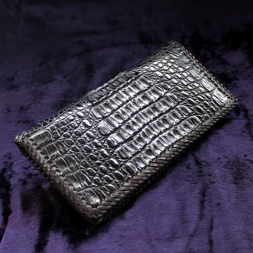 カイマンブラック・ワニ長財布/ブラックレース編み/Safari
