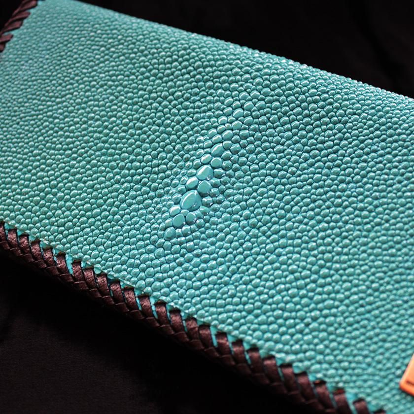 ゴージャスなスティングレイレザーに合わせてシボ付きのシュリンクレザーが