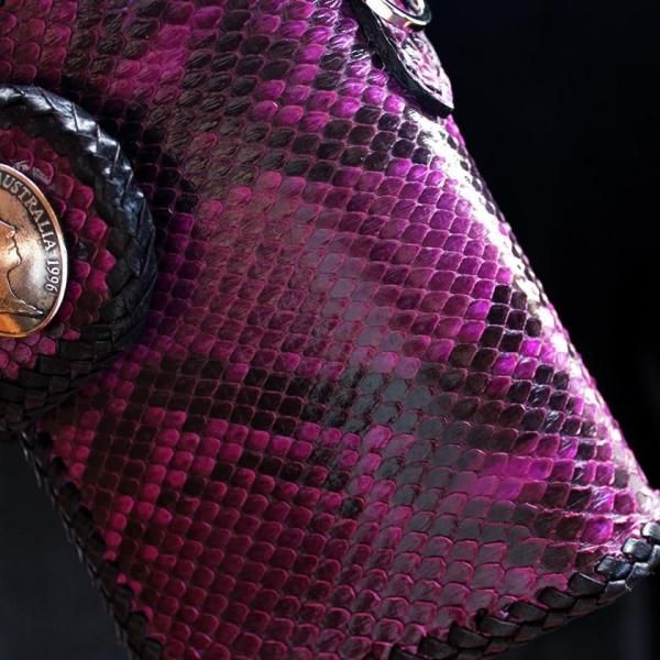 セクシーなパープルピンクカラーのパイソンレザー採用。